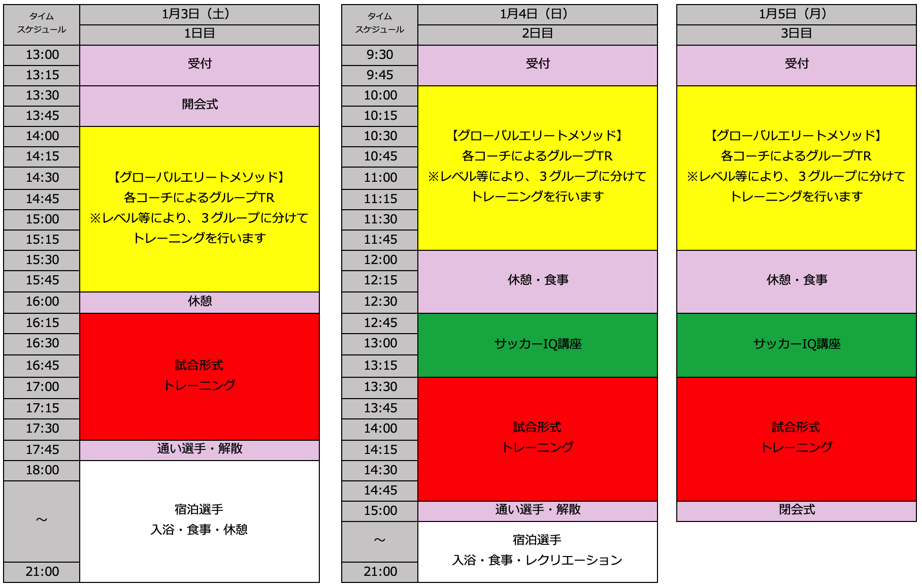 GLOBAL ELITE WINTER CAMPは、千葉会場にて開催されます。スケジュールは下記を予定しております。